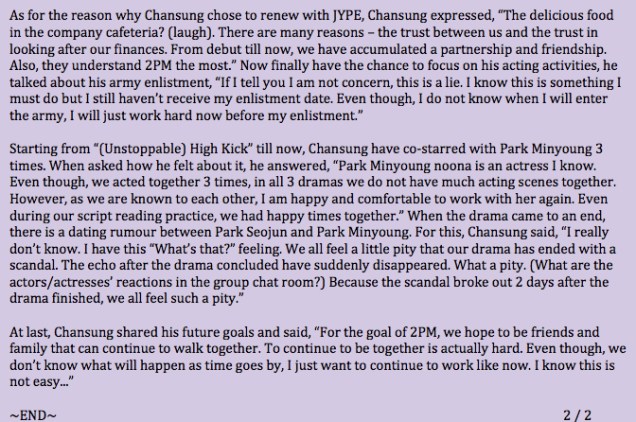 ENG TRANS – Chansung – 2018 Article where he talked about 2PM’s future and his acting activities June 8, 2019jlml718 Link to the Original Online Article Share this: Click to share on X (Opens in new window) X Like Loading...