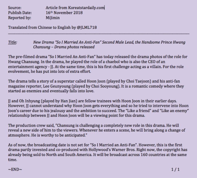 ENG TRANS – Chansung – Article about his upcoming Korean drama ‘So I Married An Anti-Fan’ 2019 June 8, 2019June 8, 2019jlml718 Share this: Click to share on X (Opens in new window) X Like Loading...