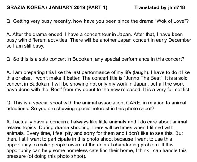 ENG TRANS – Junho – Grazia January 2019 – Live Together June 8, 2019jlml718 All credit goes to Grazia Korea. Photo credit to the respected owners. Share this: Share on X (Opens in new window) X Like Loading...