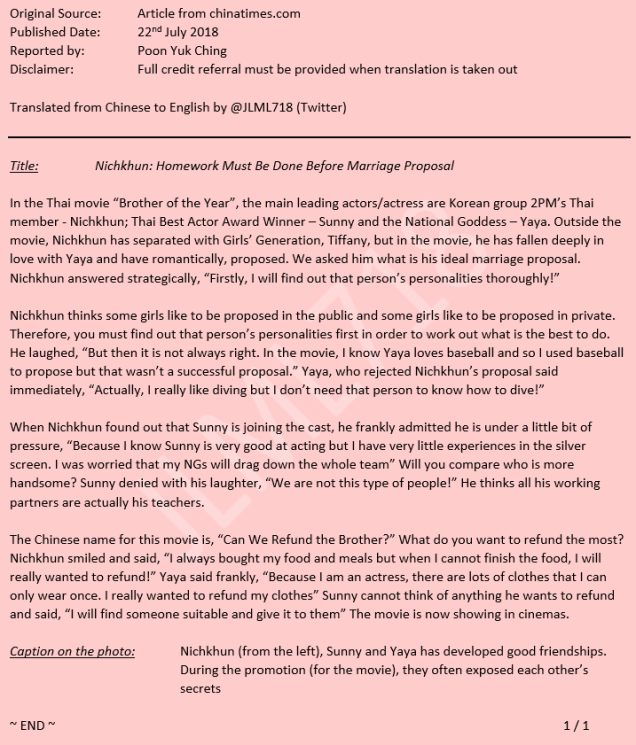 ENG TRANS – Nichkhun – 2018 Brother of the Year Interview June 10, 2019jlml718 Link to Original Online Source All credit goes to the respected photo owner. Share this: Click to share on X (Opens in new window) X Like Loading...