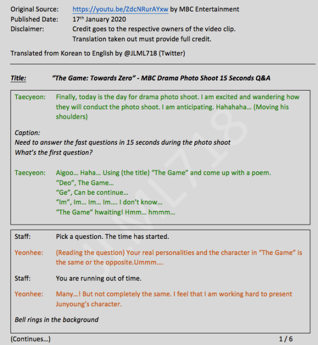 ENG TRANS – 2PM Taecyeon – MBC Drama ‘The Game: Towards Zero’ 더 게임: 0시를 향하여 – Photoshoot Making 15 Seconds Q&A January 21, 2020jlml718 Link to the video All credit goes to the respective owners of the video. Translation is done for fan sharing with no financial gain. Share this: Share on X (Opens in new window) X Like Loading...