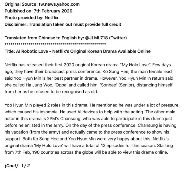 All credit goes to the respective owners of the article and photo. Translation is done for fan sharing with no financial gain.