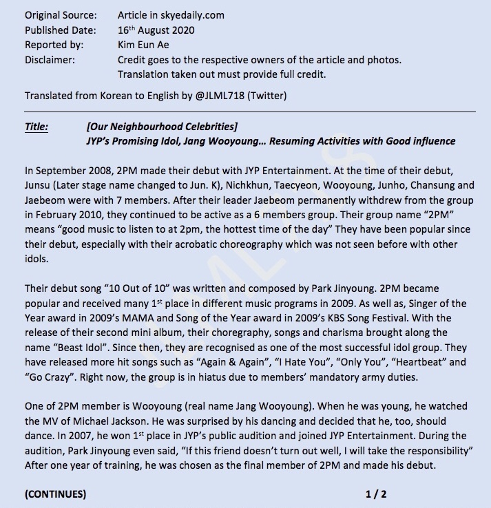 ENG TRANS – 2PM Wooyoung – 2020.08.16 Korean Article mentioned 2PM and Wooyoung’s past in the Entertainment Industry August 18, 2020jlml718 Link to the online article Share this: Click to share on X (Opens in new window) X Like Loading...