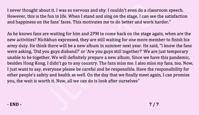ENG TRANS – 2PM Nichkhun – 2021.01.02 Hong Kong Article for Khun, “On the day when we finally meet, I can promise you, the wait is worth it” January 4, 2021January 5, 2021jlml718 Original Source Share this: Click to share on X (Opens in new window) X Like Loading...