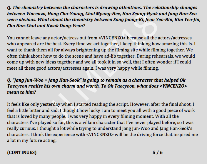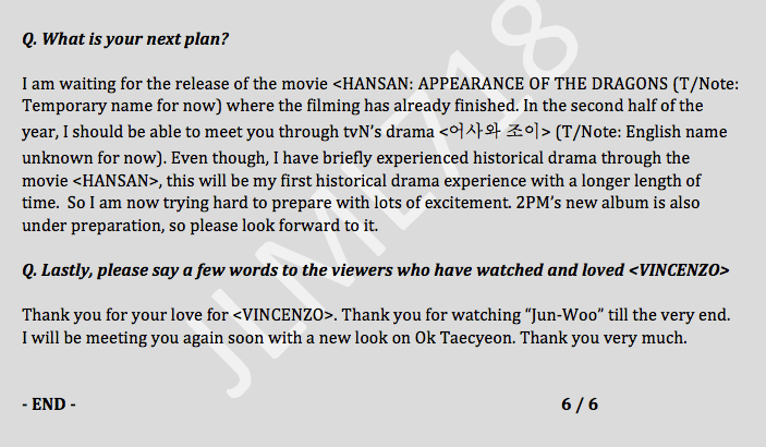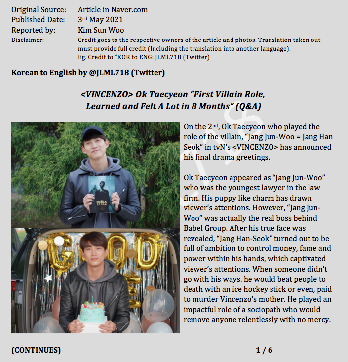 ENG TRANS – 2PM Taecyeon – 2021.05.03 Korean Article: Taec’s Final Greeting for <VINCENZO> + Media Q&A May 3, 2021May 3, 2021jlml718 LINK to the Original Source Share this: Click to share on X (Opens in new window) X Like Loading...