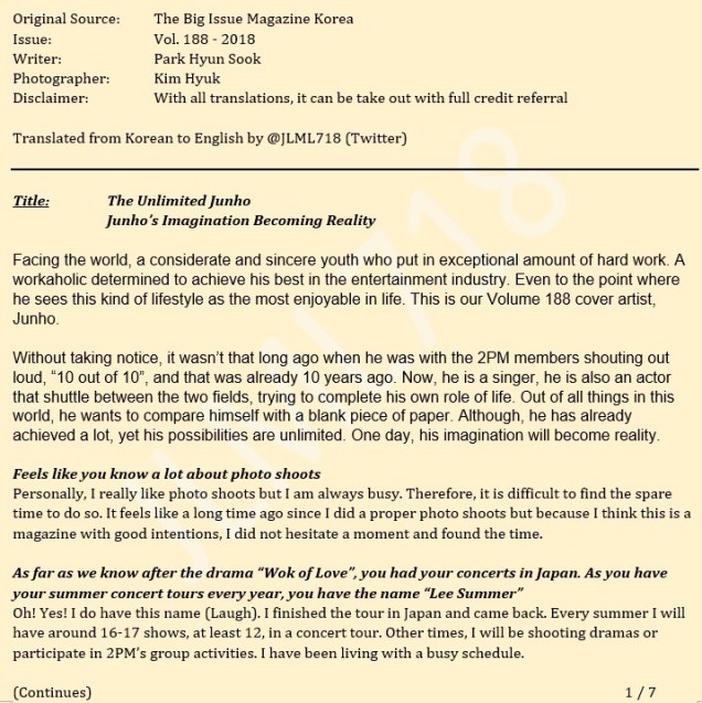 ENG TRANS – Junho – The Big Issue Vol.188 – 2018 The Unlimited Junho June 8, 2019June 8, 2019jlml718Leave a comment Link to The Big Issue Korea All credit goes to The Big Issue Korea. Photo credits to the respected owners.