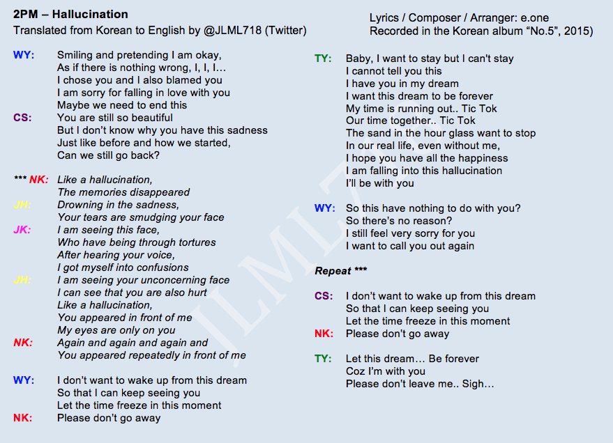 ENG TRANS LYRICS – 2PM OT6 – “Hallucination” – No.5 Album 2015 January 18, 2020March 15, 2021jlml718Leave a comment All credit goes to the respective owners of the photos.