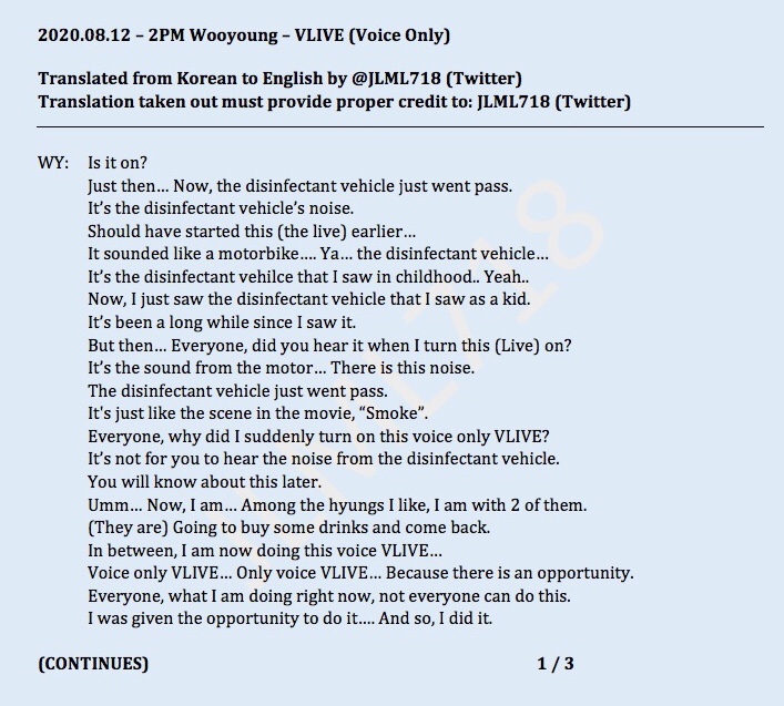 ENG TRANS – 2PM Wooyoung / Nichkhun / Jun. K – 2020.08.12 Voice Only VLIVE August 13, 2020jlml718Leave a comment